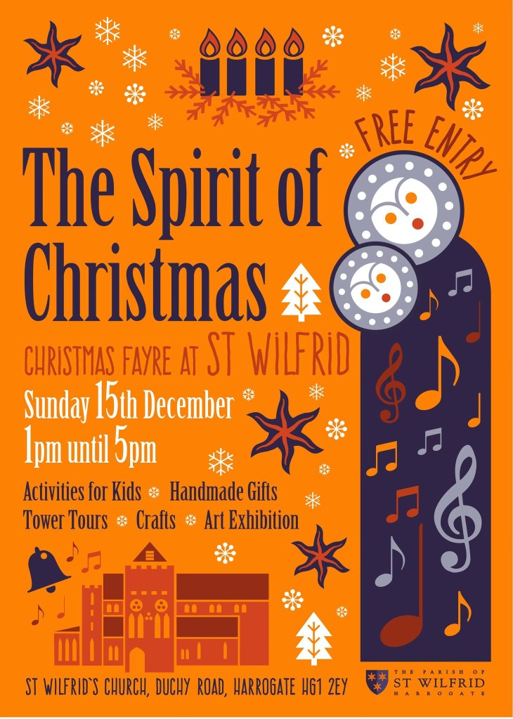 Join our bellringing team for a tower tour at St Wilfrid Harrogate at our Christmas Fayre on Sunday 15th December, one of the highest vantage points in Harrogate town! Have a go at ringing the bells and find out about the history of Grade I listed St Wilfrid’s.