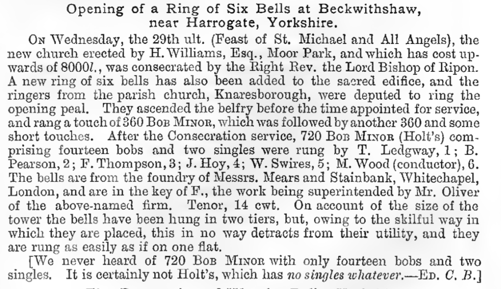 Ringing at Beckwithshaw